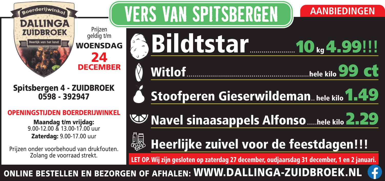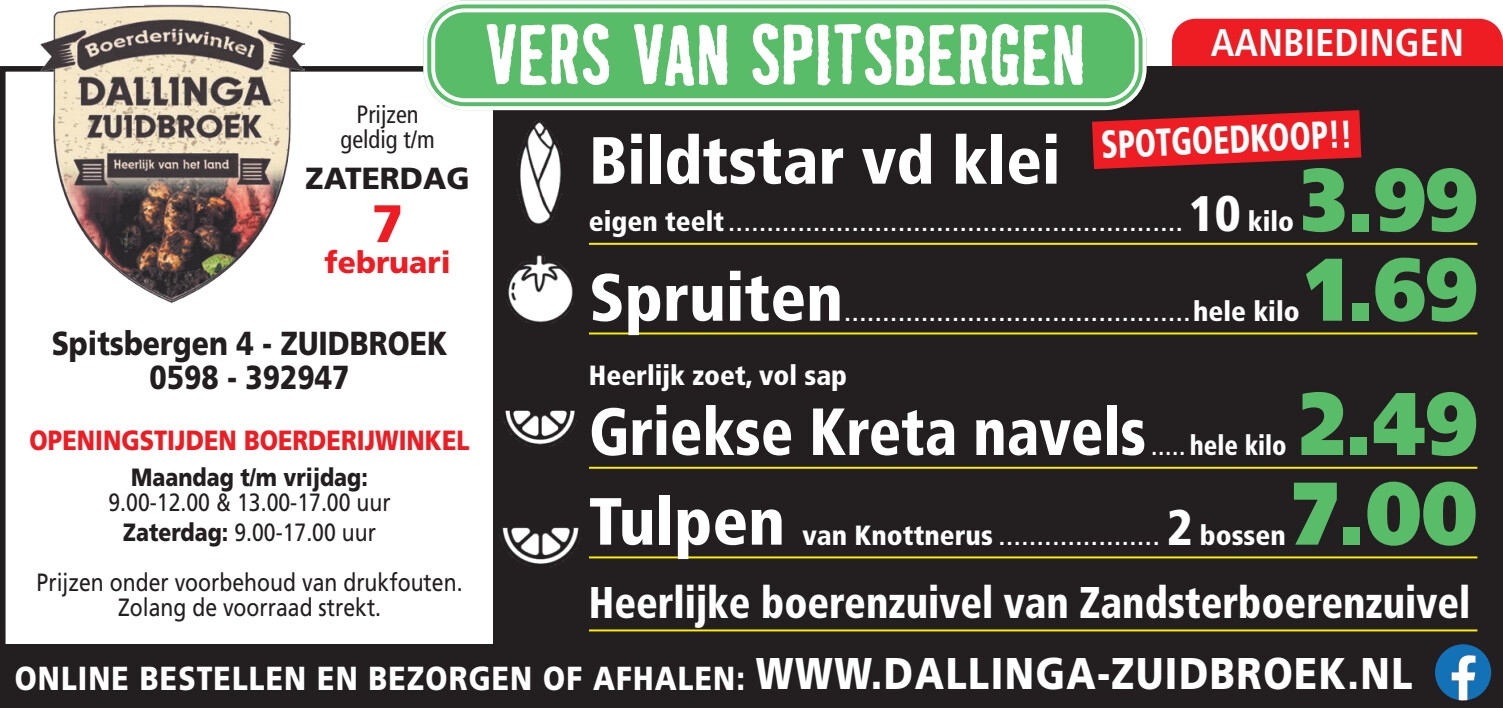 Onze producten zijn van de hoogste kwaliteit en scherp geprijsd. Kijk voor onze wekelijkse aanbiedingen op onze aanbiedingspagina en Facebook.